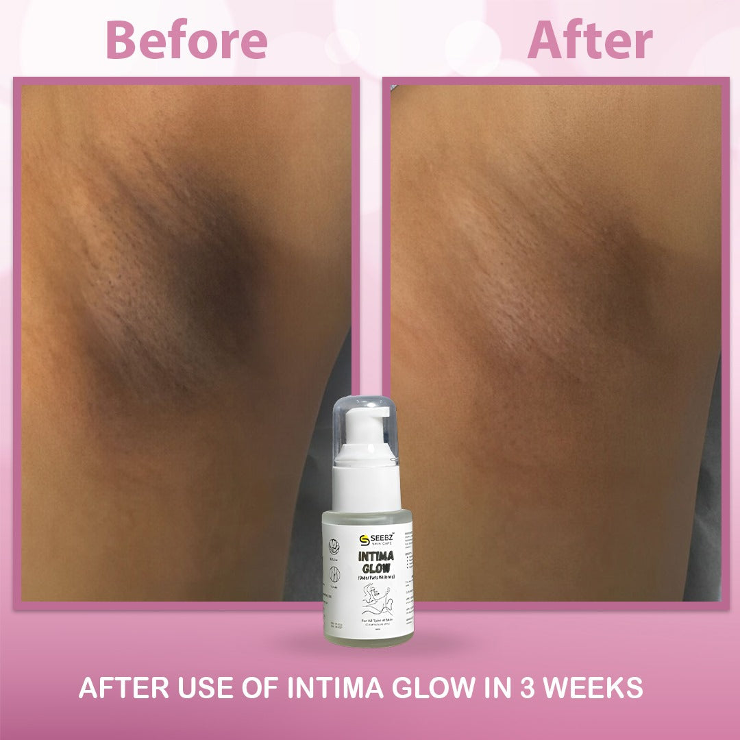 Discover the confidence of beautifully even-toned skin with Seebz Skincare's Intima Glow Serum 🌸✨. Specially formulated to brighten and even out the skin tone of intimate areas, this gentle yet effective serum helps reduce discoloration and promote a radiant glow. With a blend of natural brightening agents like Licorice Extract, Vitamin C, and Alpha Arbutin, Intima Glow is designed to be both safe and effective.